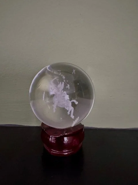 Many of us operate under the unconscious belief that if we worry enough, plan enough, or think through every scenario enough times, we can somehow control what happens next. The Crystal Ball gently challenges this illusion whilst acknowledging the very human desire for certainty and control. Even the most skilled fortune-tellers with their crystal balls cannot truly see what lies ahead—and neither can we.